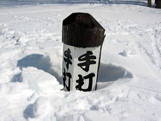 ハウスが見えました。どんぐりハウスって名前が可愛いです。そして雪に埋もれた手打ちが…(^^;;怖いっす。