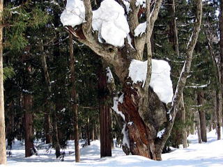 ↑ポインター 大木には雪が残ってます