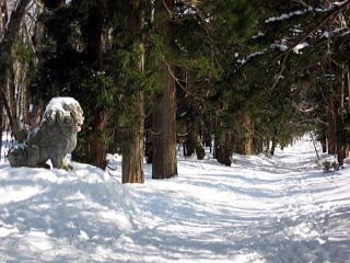 素早くお参りをし元の道を帰ることにします。道から反れて新雪の上に足跡をつけながらです♪