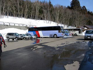 スキー場近くの駐車場に着きました。今日は長野県のスキー場で色々なイベントをしているようです。