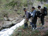 水の中の石って苔で滑ります。今日はカメラをぬらすと大変なので、一歩一歩慎重に進みます。最後の二ヶ所が緊張しました。