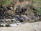 歩いていくと、水音が聞こえます。堰堤からの音でした。いくつか通過してから沢を渡ります。