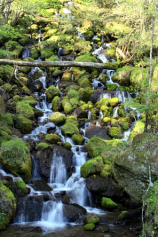 地獄滝です。こんなに綺麗な滝に恐ろしい名前が…苔がとても素敵なんですよ。