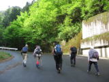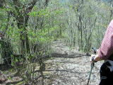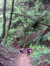 尾根道手前の登りも、急坂でした。アキレス腱伸ばし運動でもしているようです。ふ〜
