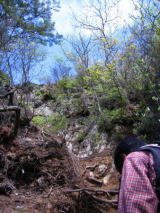 木の根の張り出した急坂もありました。根をつかみながら登れるので安心感があります。