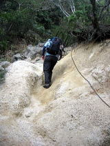 登っていくといきなりクサリが出てきました。登山道も砂のザレた様な道でいつもと様子が違います。