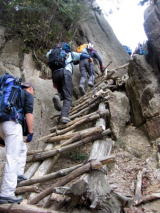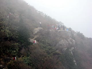 最後の階段を登ると山頂は直ぐそこです。ここからはお気楽な服装の人が多く見受けられました。