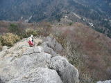 | 駐車場9:00〜登山口9:10〜負ばれ石9:45-50〜地蔵岩10:15〜御在所岳山頂12:10-昼食出発13:05〜武平峠14:00 |