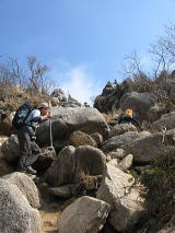 最後の岩場はザレ石が曲者でした。ズリッと後ずさりします。