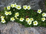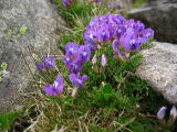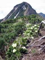 | ☆ ☆ ☆ 三叉峰に戻り、赤岳へと向かいます。所がお花が凄いのです。 ここにも咲いてるね〜でなかなか前に進みません。 ツクモグサもチョット危険な場所に咲いているので、落ちないように撮りに行きます。 ☆ ☆ ☆ |