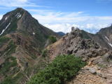 | ☆ ☆ ☆ 地蔵払に着きました。赤岳がだいぶ迫ってきました。 ここから見える小屋を確認し登ります。キレット小屋でトイレ休憩(^^;; 洋式の水洗トイレで綺麗なんです。有料100円ですが、惜しくはありません。 ☆ ☆ ☆ |