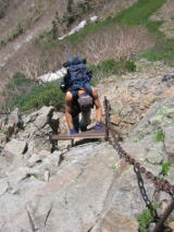 | ☆ ☆ ☆ 登山道のクサリありの場所は、スリル感たっぷりです。 降りるのは良いけど、帰りはここを登るんだと見上げたりします。 ☆ ☆ ☆ |