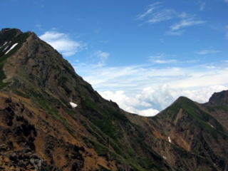 | ☆ ☆ ☆ お花を見ながら、赤岳の姿が徐々に変わってきます。近づいてるんだな〜と実感♪ クサリつきの頼りないハシゴはビクつきながら降ります。 ☆ ☆ ☆ |