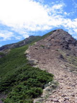 | ☆ ☆ ☆ 見上げると遠いな〜。でも一歩一歩進むと確実に近づいてくるのが分かります。 最後のザレ場は、石を落とさないように慎重に登ります。小屋に着きました♪ ☆ ☆ ☆ |