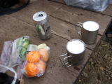 | ☆ ☆ ☆ 下界を眺めてから、チョット先の山頂にて写真を撮ります。 戻って持参のビールにて、 カンパーイ。美味しかったわぁ ☆ ☆ ☆ |