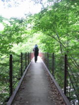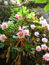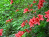 | ☆ ☆ ☆ いよいよ未体験ゾーンに突入です。少し登ると、水量のある滝が見えました。わぁ凄い。 進んでいくと新緑で綺麗な眺めになりました。所がその先は倒木などで荒れた状態になってます。 楽には登れないのね〜と嘆き気分で進んでいくと、ピンク色が目に止まります。 ☆ ☆ ☆ |