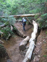 ☆ ☆ ☆ 前半の登山道は、道がえぐれていて一段登るのが大変です。 なんたって、足の長さがながさが…(^_^;