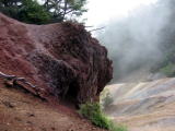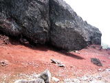 でも、少し降りた斜面に、火山後だったと想像できる赤い岩や小石の斜面がありました。