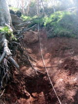 三合目・四合目を通り過ぎると、左手に崩落したような斜面がありました。