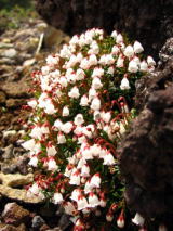 岩陰に白いのもがあると近づいたら、ツガザクラの大株でした。