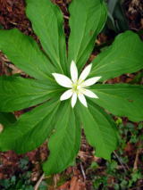登っていくと行きでは気が付かなかった、キヌガサソウを見つけました。今年お初なので、嬉しかったです。