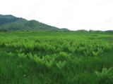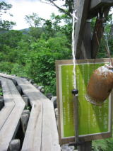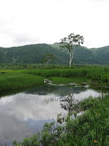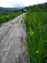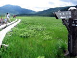 ただミズバショウの群生していた木道には熊除けの鐘がありました。今日は、珍しい所にあります。