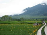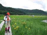 牛首の分岐点からは遠くに黄色い塊が見えます。ニッコウキスゲですね♪