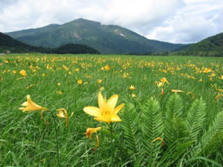牛首を通過すると、橋の手前とビューポイントにはキスゲがたくさん咲いています。
