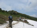 そこから山頂方面を眺めると、団体さんが下りてくるのが見えます。