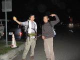 | ☆ ☆ ☆ あっ流れ星だとスパ様が…願い事があったようです。 聞かせて貰いましたが、早く叶うと良いですね〜♪ ☆ 八合目手前で、後ろから来た人にせかされてしまいました。 平らになった所で追い越してもらおうと急いで登り、ホッとした所で足がもつれました。 そのとたん、こけて…足首を痛めたみたい。どうしようここで引き返したくないないな〜 八合目で足首にバンテ○ンを塗って、靴紐をきつめに締めました。 応急処置でなんとか大丈夫みたい。気を取り直して登っていきます。 この辺りは眠気のピークでもあったかなぁ。登山道で寝ている人が羨ましかったです(^^;; ☆ ☆ ☆ |