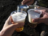 | ☆ ☆ ☆ お腹も空いたので、お釜を見ながら朝食を食べます。もちろんビールで乾杯もです。 美味しいですねぇ。(*^m^*) ムフッ ☆ ☆ ☆ |