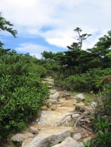 最初に階段を登っていきます。すぐなだらかな道になり、下ると朝日峠です。