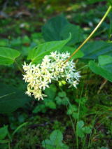 | ☆ ☆ ☆ 下山中、キリンソウのお花がたくさん咲いているのが見えました。 足元の草を踏まないように近づいていきます。 ☆ キリンソウだと思っていたお花はキオンでした。へぇ〜たくさん咲いているのねで数枚パチリ マルバタケブキにはアサギマダラが羽根を休ませていました。グッドタイミングでパチリ♪ |