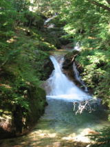 | ☆ ☆ ☆ 沢沿いは風が吹いてきて涼しいです。 滝オフなら間違いなく沢シューズでジャブジャブと朔行でしょうね(^_^; 沢から離れて高巻きを登る事もありますが、また沢に降りていきます。 それが遊歩道の良さですね。 ☆ ☆ ☆ |