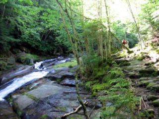 | ☆ ☆ ☆ 千曲川・信濃川水源地まで、遊歩道なので歩きやすくなだらかです。 ☆ 水音はついつい気になり、カメラを構えてしまいます。 今回は個人山行なので先に行ってとのんびり歩けました。 ☆ ☆ ☆ |