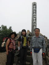 | ☆ ☆ ☆ 軽めのアップダウンを数回繰り返すと、山頂が見えてきました。 山頂には数人の人がいました。撮りますよと声をかけていただいたのでシャッターを押してもらいます。 ☆ ☆ ☆ |
