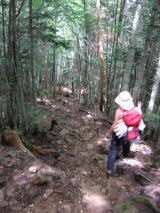 | ☆ ☆ ☆ 夏山は雷が怖いので、サクサクと降ります。登りで急だった坂は下りも大変ですね。 木を掴みながら慎重におります。 ☆ ☆ ☆ |