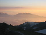 白馬山頂14:05-25〜山荘14:35 夕食16:35 夕景19:00
