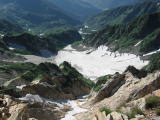 雪渓までは本日の危険箇所がありました。クサリがあり狭い登山道を慎重に降りないとです。