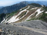 斜面を横切るときは上方を見ながら足早に通過します。ここって落石が多いようです。