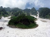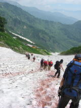 また雪渓を歩きます。雪からの冷気が見えとても涼しい〜。自然のクーラーですね。