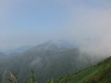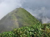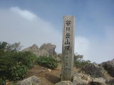 少し休憩してオキノ耳に向かいます。ここも眺めは期待できませんでした。 するとガスが急にとれ青空が覗きます。