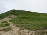 背丈の低い草をかき分けたような、雨が降って出来たような、そんな道を降りていきます。