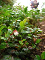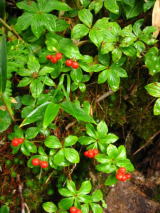 | ☆ ☆ ☆ そして朝日岳に到着。雲はありますが良い眺めです。 ペタッ♪大変だったけど今年も三角点にタッチできました。 ☆ 休憩していると後ろから次々人が登ってきます。落ち着かないので、笠ヶ岳へと向かいます。 確かいくつかピークを越えなくては…下りが急なので焦らずゆっくりと降りていきます。 去年登った時は、ゴゼンタチバナのお花が多かったので赤い実もあるはず…思った通りありました。 ☆ ☆ ☆ |