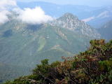 | ☆ ☆ ☆ そこからの登りは無風で暑さも加わり喉が渇いて辛かった〜。 でも、もっと先だと思っていた、ジャンクションピークに着きました。 ここまで、ひたすら登ると聞いていたので、もっと大変かと構えていたのです。 次なる目的地は朝日岳。そこまでは歩きやすい道ですが暑さには参ってしまいます。 ☆ ☆ ☆ |