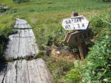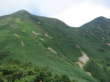 | ☆ ☆ ☆ 朝日岳手前には草原があります。とても綺麗♪昨年はガスがかかり山頂からこの景色は見えませんでした。 今回は見ることができ嬉しいです。 山頂の前に少し下って水の補給をします。冷たくてとても美味しいお水です。ふ〜 ☆ ☆ ☆ |