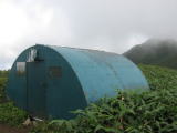 | ☆ ☆ ☆ 目覚めはバッチリです。昨日は、アミノバイタルを数回飲んだので筋肉痛はそれほどでも♪ 避難小屋の人たちは既に出発してました。 ☆ 目覚めた頃、出発する人が、みなまるさんに道を尋ねているのが聞こえます。 ここを下って、ひたすら登ると朝日岳方面です…ひたすら登る?(^^;;イヤネン ☆ ☆ ☆ |