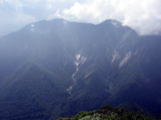 | ☆ ☆ ☆ 下りながら前方を見ると笠ヶ岳山頂が綺麗に見えます。かまぼこ型の避難小屋も確認できました。 昨年も大変だったわね〜と記憶がよみがえって来ます。それにしても暑い暑い、汗がぽたぽたと流れ落ちます。 ☆ 笠ヶ岳山頂に到着。人も多いけど、虫も凄いです。なぜかまとわり付かれてハッカ油をシュー。 効き目が無いようです。おにぎりを食べてる間も虫を追い払います。 もっと若い人の所に行きなさいよ〜っと思いながらです(^^;; ☆ 地図を見ると白毛門まで50分ですが、もっと遠くに感じます。 笠からいきなりの下りがきついんです。急坂で岩が多いです。 岩場ではストックを使わないほうが良いのですが、体に負担を掛けたくないので頼ってしまいます。 ☆ ☆ ☆ |