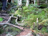 人がほとんど通らないようなので、道の岩には苔が付いていて滑りそう。橋もかなり危ないです。