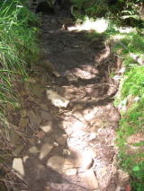 いきなり狭い急坂になります。息を整えるため少し登っては立ち休み。